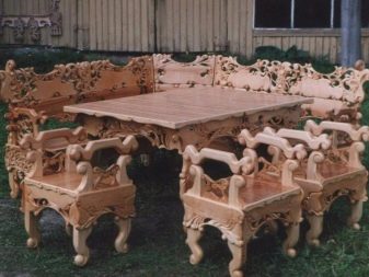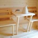 بالإضافة إلى الرفوف القياسية في قسم الغسيل في الحمام ، يتم استخدام الطاولات والكراسي والمقاعد والمقاعد والأرائك والمقاعد.. يوصي الخبراء بصنع طاولات وظهور ومقاعد ذات فجوات صغيرة لتصريف المياه ، مما يزيد بشكل كبير من متانة الأثاث الخشبي..