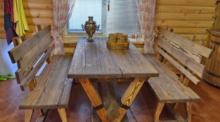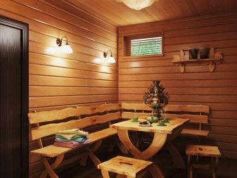في الوقت نفسه ، من المهم مراعاة ليس فقط جماليات المقاعد والطاولات والمقاعد والكراسي في الحمام ، ولكن أيضًا نوع الخشب المصنوع منها وما هي المعالجة التي تم إجراؤها. بعد كل شيء ، يمكن أن تؤثر الرطوبة العالية وانخفاض درجات الحرارة الثابتة سلبًا على أي مواد بناء..