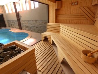 في أغلب الأحيان ، عند الحديث عن الساونا ، يتم تقديمها كغرفة صغيرة ، تصطف جدرانها باللوح ، وهناك موقد حجري ومقاعد. ومع ذلك ، إذا سمحت الإمكانات المالية ، فيمكنك تجهيز مجمع كامل ، والذي سيشمل غرفة تبديل ملابس ، وحمام سباحة أو غرفة مع دش ، وصالة رياضية مع معدات تمارين رياضية ، وغرفة استرخاء ، وغرفة بلياردو. بشكل عام ، كل شيء مقيد فقط بخيالك وأموالك. في هذه الحالة ، تحتاج إلى وضع خطة أو رسم..