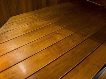 إذا قررت إنشاء أرضية خشبية في الساونا ، فأنت بحاجة إلى عمل ركائز أو أعمدة حجرية تحت جذوع الأشجار. يجب أن تكون متباعدة على فترات 400 ملليمتر. يجب إنهاء الألواح الأرضية بشكل جيد ، بسمك لا يقل عن أربعين ملم. يتم تثبيتها على براغي ، مما يترك فجوة صغيرة (من 2 إلى 3 ملليمترات). يتم إخفاء القبعات ذاتية التنصت في الأرض وإغلاقها بالمقابس.