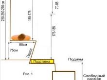 يجب أن يكون الطول من الباب إلى الجدار المقابل مترين على الأقل ، وأن يكون الارتفاع الأمثل للسقف 2.1 متر. في هذا الارتفاع يتم ضمان دوران الهواء الجيد وتدفئة الشخص الموجود في الطبقة الثانية. إذا كان السقف أعلى ، فسيتم تعطيل دوران الهواء وستظهر تيارات هوائية ، مما قد يؤدي إلى حدوث حرق شديد..
