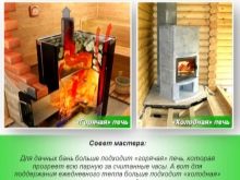 سيكون الاختلاف التالي هو الفرن. في أغلب الأحيان ، تم تجهيز غرف الساونا بمواقد كهربائية بها حجارة في الأعلى. يقومون بتسخين غرفة البخار في وقت قصير والحفاظ على درجة الحرارة المطلوبة لفترة طويلة. عادة ما تصنع المواقد الحجرية الضخمة في الحمام. يستغرق الإحماء وقتًا أطول ، لكنه يظل دافئًا جيدًا وينتج بخارًا جافًا. في مثل هذه الأفران ، عادة ما تكون الحجارة بالداخل ، ونتيجة لذلك يتم الاحتفاظ بالحرارة. بالإضافة إلى ذلك ، في الحمام ، هناك حاجة إلى موقد لتسخين المرجل بالماء. في الساونا ، ليس لديها مثل هذه الوظيفة..