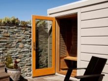يجدر الانتباه إلى مقبض الباب. يجب أن تكون مصنوعة من مادة لا تسخن. هذا مهم بشكل خاص للمقبض الموجود داخل غرفة البخار..