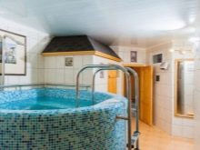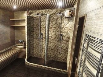 يمكن صنع الحمام بجوار غرفة البخار أو إعداده كغرفة منفصلة. يمكن تركيب حوض استحمام أو حوض استحمام. على سبيل المثال ، إذا كان الحمام غير موجود بالقرب من منزل خاص ، ولكنه عام ، وبالتالي سيكون هناك الكثير من الزوار ، فمن الأفضل عمل عدة حمامات (عادة ما يكفي اثنان أو ثلاثة).