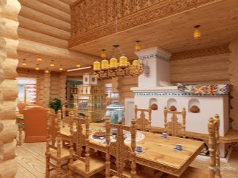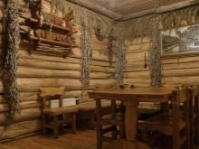 في مثل هذا الحمام ، يمكنك تثبيت مقاعد خشنة وطاولات كبيرة وألواح جانبية وسخان موقد. لخلق الجو الضروري ، لا ينبغي لأحد أن ينسى الأشياء الصغيرة: مغارف خشبية ، ومفارش مطرزة ، وسموفار قديم ، وما إلى ذلك. يمكن تزيين الغرف في الحمام الروسي باستخدام المكانس.