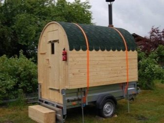 يمكن لمالكي البيوت الصيفية الصغيرة أيضًا توفير حمام كامل. ويمكن أن تكون غرفة البخار المتنقلة بديلاً ممتازًا. إنه ذو تصميم صغير ، والمساحة الداخلية لا تختلف عن الحمام الثابت الكامل. يوجد بالداخل فقط غرفة بخار ومنطقة دش. لكن مثل هذا الحمام سيكون لا غنى عنه ليس فقط في منطقة ضواحي صغيرة. يمكن استخدامه أيضًا في أي مكان: في السفر أو الرحلات الاستكشافية أو في مواقع البناء..