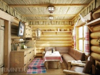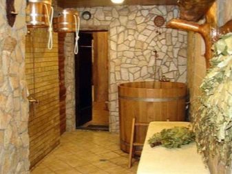 يمكن أن تكون الزخرفة الرئيسية للداخل عبارة عن مكانس من خشب البتولا وأحواض وسموفار وقبعات وإكسسوارات أخرى لإجراءات الحمام. ويمكن تزيين الجدران العارية بلوحات أو هدايا تذكارية خاصة بك..