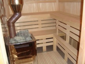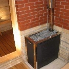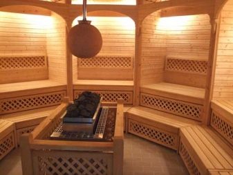 في أغلب الأحيان ، يتم تثبيت موقد مع موقد في غرفة بخار في زاوية واحدة.. ولكن إذا كنت تخطط لبناء حمام لشركة كبيرة ، فيمكنك التفكير في تركيب غلاية في الجزء المركزي من غرفة البخار. هذا الإصدار من الموقد غير مناسب للحمامات ذات البخار الرطب ، حيث من المعتاد وضع الماء الساخن على الحجارة لرفع مستوى البخار والرطوبة. ولأغراض السلامة من الحرائق ، يجدر أيضًا حماية الغلاية من العناصر الخشبية بإطار واق. كما أنه سيحميك أنت وضيوفك من لمس الأحجار الساخنة عن طريق الخطأ..