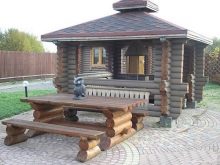 بالإضافة إلى المسبح ، يمكن أن يكون هناك شرفة مع شواء أو مدفأة تحت نفس سقف الساونا – وهذا خيار رائع للمضيفين المضيافين. في هذه الحالة ، لا داعي للتفكير في ترتيب غرفة استرخاء داخل الحمام. وستحل الشرفة المفتوحة بالقرب من الحمام محل شرفة الحديقة. في الهواء الطلق ، لا يمكنك طهي الشواء فحسب ، بل يمكنك أيضًا الاستمتاع بالشاي الساخن والشيشة المعطرة ، والاستلقاء في الأرجوحة الشبكية أو لعب البلياردو. سيعود أصدقاؤك وعائلتك دائمًا إلى هذا الحمام..