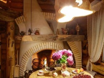 بالنسبة للحمام الريفي ، فإن طراز جبال الألب مثالي – شاليه. إنه فظ ووحشي بطريقته الخاصة ، لكنه في نفس الوقت لطيف. يتميز هذا النمط بالمواد الطبيعية: الخشب والحجر. تبدو الجدران الخشبية العالية والعوارض الضخمة على السقف رائعة في غرفة فسيحة.