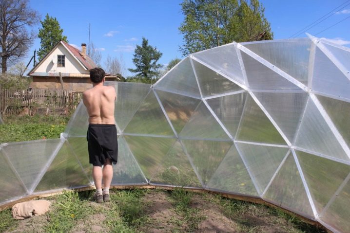 - أثبتت البيوت البلاستيكية ذات الخيام أو القباب أنها جيدة. إن إنشاء الأشكال الكروية ليس بالمهمة السهلة ؛ بعض المهارات الهندسية مطلوبة هنا. يقارن التصميم نصف الدائري بشكل إيجابي مع حقيقة أنه يتحمل الأحمال المختلفة (الرياح والثلج). عامل الإضاءة له حد أقصى. تبدو مبهجة جماليا.