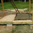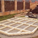 الخطوة التالية هي تركيب الأرضيات.. شعاع خشبي مثالي لتركيب القاعدة. يمكنك إصلاحه بمسامير وألواح خاصة. من المهم جدًا مراعاة ضرورة تركيب غطاء الأرضية بمنحدر طفيف لتجنب تراكم كميات كبيرة من مياه الأمطار..
