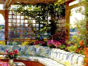 يتم تنفيذ زخرفة الهيكل بالخضرة بمساعدة نباتات التسلق مثل اللبلاب ، والأعشاب الضارة ، والعنب المزخرف ، وما إلى ذلك. وهي مزروعة حول محيط شرفة المراقبة ، بالقرب من الجدران والدعامات. بالإضافة إلى ذلك ، تحتاج إلى تثبيت تعريشات لدعم النباتات وحمايتها. عند مدخل شرفة المراقبة ، يمكنك تثبيت أواني أرضية كبيرة جميلة.