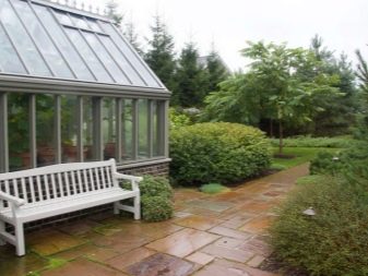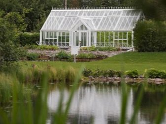 من بين الزهور وأشجار الفاكهة ، تبدو البيوت الزجاجية الإنجليزية هي الأكثر تناغمًا. يبدو أنها استمرار للمناظر الطبيعية. نظرًا لهيكل الإطار المثير للاهتمام ، يبدو الهيكل متجدد الهواء وخفيف الوزن ، وبالتالي لا يلفت الانتباه إلى نفسه ، ولكنه يؤكد على جمال البيئة.