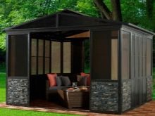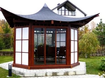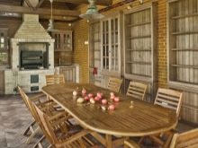 كل هذا يتوقف على التمويل والذوق التصميمي للمستهلك, يمكنك أيضًا أن تضع في اعتبارك النمط الإنجليزي – هذا أسلوب كلاسيكي ، وله خصائص مستدامة واضحة. كقاعدة عامة ، هذا سقف متعدد الأوجه ، ويتم تثبيت نظام تدفئة في الوسط ، يمكن أن يكون مدفأة أو شواء ، أو مجرد سخان. يمكنك إضافة بعض الحماس عن طريق إضافة أفكارك الخاصة إلى الهيكل..