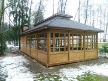 إذا كان المبنى معزولاً فيمكن استخدامه على مدار السنة: في الصيف ، عند فتح النوافذ أو إزالتها تمامًا ، وفي فصل الشتاء ، يمكنك تسخين الموقد أو الشواء على الشواية ، يمكنك ببساطة تثبيت سخان. يجب أيضًا الاهتمام بنظام التدفئة ، ولا تنس التهوية الجيدة..