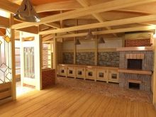 من أكثر الخيارات عملية ، ولكنها باهظة الثمن أيضًا ، تجهيز مبنى منفصل بفرن. إنها ليست قادرة فقط على الحفاظ على درجة الحرارة المطلوبة في الغرفة ، ولكنها تسمح لك أيضًا بطهي شيء لذيذ لضيوفك وأحبائك – هذا هو اختيار المضيفين العمليين..