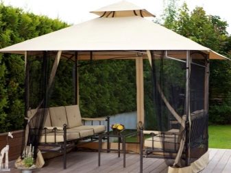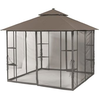 هناك أيضًا خيام جازيبو مدمجة. لديهم عناصر شبكية وإدراج نسيج. تعتبر هذه التصاميم مثالية لأنها تحمي من المطر والشمس. بالإضافة إلى ذلك ، تبدو هذه النماذج من شرفات المراقبة مبهجة من الناحية الجمالية..