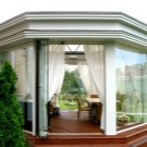 لحل مشكلة انسداد الداخل ، يمكنك إنشاء هيكل داخلي باستخدام الستائر الزجاجية.. بالطبع ، لن تكون هذه الهياكل دافئة ، مثل شرفات المراقبة الحجرية أو المصنوعة من الطوب ، لكنها مناسبة تمامًا للمناطق الدافئة. بالإضافة إلى ذلك ، يسمح فتح باب الستارة الزجاجي ، إذا لزم الأمر ، بعمل نظير من نوع شبه مغلق من شرفة مغلقة. سيكون مثل هذا الشجرة مشرقة و إذا قمت بتغطية الزجاج بفيلم خاص ، فسيتم حمايته من الإشعاع والاختباء من أعين المتطفلين كل ما يحدث في الداخل. في الوقت نفسه ، الفيلم فريد جدًا: من الداخل ، لن يكون منظر الشارع محدودًا..