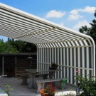 إذا قمت بإضافة مظلة إلى المنطقة ، فسوف تختبئ من أشعة الشمس الحارقة في الحرارة وستكون أفضل مكان لتناول الشاي أو تناول الطعام في الهواء الطلق. سيؤدي ذلك إلى التخلص من الحاجة إلى نقل الأثاث إلى ظلال الحديقة تحت تيجان الأشجار..