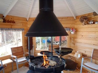 في المظهر ، تشبه حفلات الشواء هذه حفلات الشواء الإنجليزية. لديهم صندوق نيران مفتوح ، وصائد الدخان قريب من المنشور في الشكل. استخدام مثل هذا الفرن كشواية معقدة تحت سقف واحد مع طاولة وأثاث آخر, يجب تسخينه بالفحم. ينتج عن حرق الحطب العادي درجة حرارة تبلغ حوالي +300 درجة ، مما قد يؤدي إلى إتلاف الأجزاء الأكثر حساسية من الهيكل..