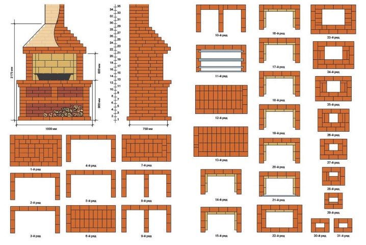 كقاعدة عامة ، يتم وضع استراحة للحطب وعدة منافذ متطابقة لأواني المطبخ في الصف الأول. من 2 إلى 8 أسطر ، يكون التصميم متداخلاً مع الضمادات المنتظمة. يحتاج الصف التاسع ، بالإضافة إلى وضعه وفقًا للرسم ، إلى الانتهاء: قطع الطوب المتطرف ، بحيث يظهر القوس بعد ذلك. في الصف العاشر ، يتم تشكيل القوس نفسه (بقاعدة من الزاوية المعدنية) على أساس Ш-47 ، في الصف الحادي عشر ، يتم وضع الأرضيات المستقبلية ، ونزع الطوب الذي يتبعهم. في المسار الثاني عشر ، حان الوقت لإغلاق كل مكان بالبناء.