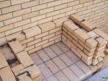 يجب وضع طبقة من العزل المائي من الأساس إلى الأرض. عندما تخطط لوضع الموقد بجوار الحائط مباشرةً ، يُنصح بوضع هذا الجدار بالكامل من الطوب. يجب ألا ننسى الصفائح الفولاذية أمام صندوق الاحتراق. يتم استخدام عجلة جلخ لقطع الطوب حسب الحاجة. إذا كنت بحاجة إلى استخدام مرجل ، يتم وضع لوحة بالزين تحته..