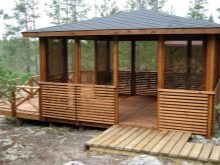 الخشب مادة دافئة وجمالية. مثل أقيمت شرفات المراقبة من جذوع الأشجار المستديرة والعوارض اللاصقة. ومع ذلك ، فإن المصفوفة تنهار بمرور الوقت ، وتحتاج إلى علاج من القوارض والحشرات ، والطلاء العادي أو الورنيش. بالإضافة إلى ذلك ، يعد الخشب خطرًا على الحريق ، لذا فإن ترتيب حفلة شواء في مثل هذه الشرفة يتطلب اتخاذ تدابير لمنع نشوب حريق.