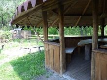 - خيار مع طاولة تقطيع ومكان لتخزين الحطب ومرجل وموقد روسي.