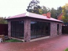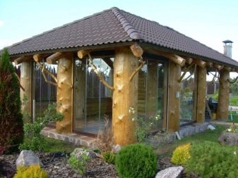 يمكنك استكمال هذه المباني بالزجاج المقوى., إذا لزم الأمر ، اختر له فيلمًا خاصًا يحتفظ بالحرارة. ستسمح شرفة المراقبة المصنوعة من الطوب المزجج بإيواء الضيوف فيها ، إذا لزم الأمر..