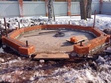 يمكنك بناء شرفة المراقبة مع الشواء في كوخ صيفي بيديك ، خطوة بخطوة لأداء كل مرحلة من مراحل البناء. أولاً ، يتم حساب الكمية الإجمالية للمواد وتحديد الموقع وتحديد محيطها. على سبيل المثال ، يمكنك أن تتخذ هيكلًا مثمنًا من الطوب كأساس. يتم صب الأساس باستخدام أسمنت إجهاد مقاوم للصقيع والرمل للخرسانة.