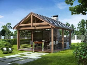 تتمتع الأكشاك مع الشواء بالعديد من المزايا. هم أكثر مضيافًا ، لأن وجود حفلة شواء يفترض مسبقًا علاجًا ، مما يعني إقامة أكثر راحة داخل المبنى. اعتمادًا على نوع الشجرة نفسها ، يمكن أن تتولى وظائف المطبخ ، وهو أمر مهم بشكل خاص في الحرارة ، عندما تكون الحرارة الزائدة في المنزل غير مرغوب فيها. داخل مثل هذا المبنى ، يمكنك إنشاء منطقة ترفيهية ، والتي لن تسمح لك فقط بتناول الطعام ، ولكن أيضًا للاسترخاء..