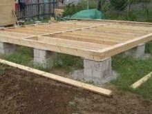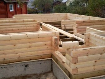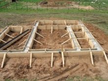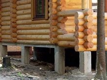 إذا تم بناء مبنى من الخشب في الأعلى ، فمن الأفضل اختيار أساس خرساني عمودي ، توضع فوقه جذوع الأشجار وتشكيل الأرضية.