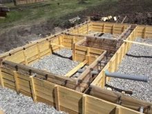 قم بإصلاح المحاور لفترة وجيزة خارج الخندق ، وستساعد الخرق في التحكم في مستوى الصفر. سيقومون بتبسيط العمل التمهيدي بشكل جذري. يتم القطع من أعلى زاوية في المنطقة المخصصة ، ويتم التحقق من الزوايا اللاحقة عند النقطة الأولى. إذا كنت تخطط لتثبيت منزل خشبي ، فإن طريقة العمل مع المؤسسة تختلف إلى حد ما عن المخطط المعتاد. يجب وضع الحمام الكبير ، الذي يحتوي على غرفة بخار وقسم للغسيل ، وغرفة استرخاء وغرفة ملابس بالإضافة إلى علية ، على أساس شريطي بعمق 120-160 سم.