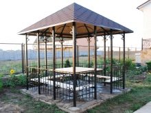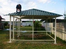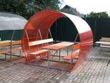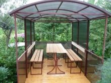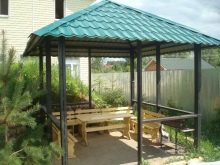 الكشك المصنوع من أنبوب احترافي هو تصميم حديث لا يمكن أن يكون مكانًا ممتازًا للاسترخاء فحسب ، بل يصبح أيضًا زخرفة حقيقية لمنطقة الكوخ الصيفي.
