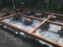 إذا لم يتم توفير صب الأساس في مشروع شرفة المراقبة ، فبعد تنظيف الموقع ، يتم تسوية التربة بعناية ، والقضاء على جميع المخالفات والنتوءات. هذا بحيث يمكن وضع الأرضية على أرض مستوية. يتم تركيب هيكل ثابت بدون أساس باستخدام صب الخرسانة لملف جانبي معدني. هذا هو أساس الهيكل المستقبلي. يتم حفر كل أنبوب في الأرض لعمق لا يقل عن 70 سم.