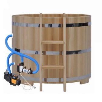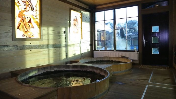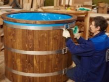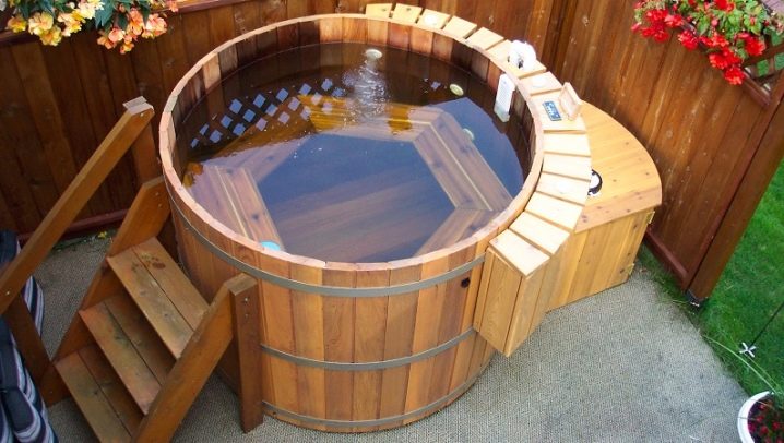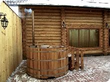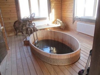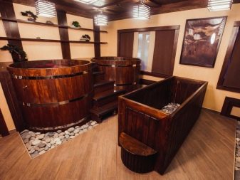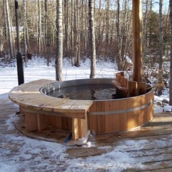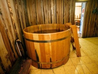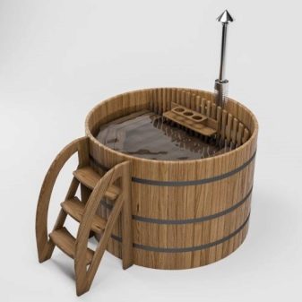 يتراوح ارتفاع البرميل من 80 إلى 130 سم ، والماء الموجود فيه يصل إلى 45 درجة. تم تجهيز الحوض المستدير من الخارج بخطوات مريحة للتسلق ، ومن الداخل – بمقاعد حول محيط البرميل. نظام التسخين عبارة عن فرن يقع أسفل القاع أو على الجانب داخل البرميل. في نسخة التدفئة الداخلية ، يتم فصل الموقد عن المقاعد بشبكة خشبية.