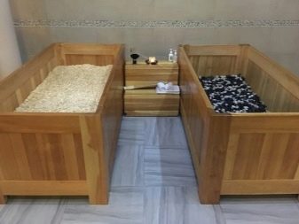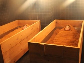 تؤخذ نشارة الخشب في ofuro بالضرورة من بعض الأخشاب (البلوط والأرز والزيزفون) ومشبعة بالزيوت الأساسية ومستخلصات الأعشاب الطبية والجذور. نفس الموقد ، كما في Furaco ، يسخن نشارة الخشب والحصى إلى 50-60 درجة ، مما يؤدي إلى ارتفاع درجة حرارة جسم الإنسان وتشبعه بأبخرة مفيدة من الزيوت والنباتات. طول ofuro مصنوع لارتفاع شخص طويل (حوالي 2 متر) ، والعرض تعسفي ومريح للغاية حتى بالنسبة للأشخاص الذين يعانون من زيادة الوزن. يمكن أن يكون ارتفاع الحمام مختلفًا. كقاعدة عامة ، هذه حاويات عميقة تحتوي على 45-50 كجم من نشارة الخشب.