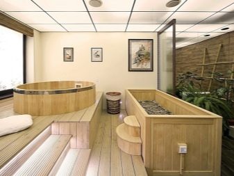 الفرع الرئيسي للحمام الياباني هو غرفة ofuro و furako. إذا كانت مساحة المبنى المستقبلي محدودة ، فسيتم حساب مساحة الخط مع مراعاة حجم الحمامات فقط ، وراحة الاقتراب منها. من الضروري تخصيص مساحة لغرفة الملابس ، حيث يمكنك خلع ملابسك وترك حذائك..
