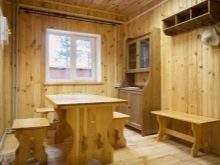 بالنسبة للديكور الداخلي للحمام ، يتم استخدام المواد الطبيعية فقط ، خاصة من أصل خشبي.. تحافظ على الحرارة جيدًا وتبدو البطانة جميلة:
