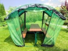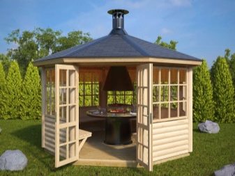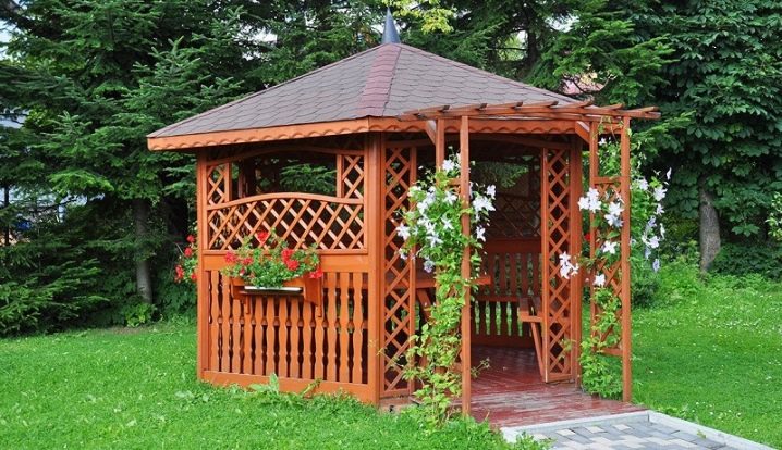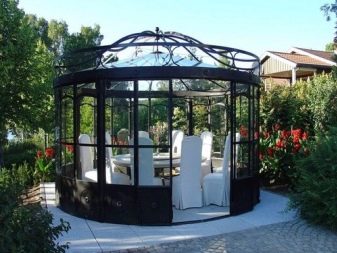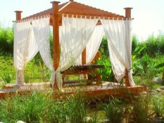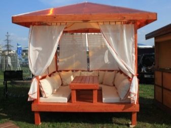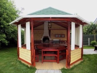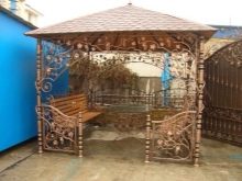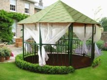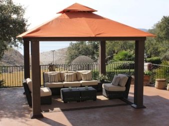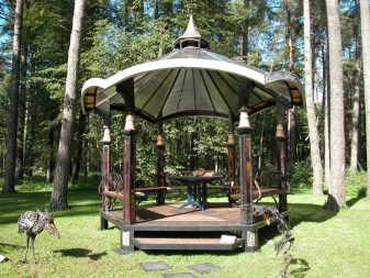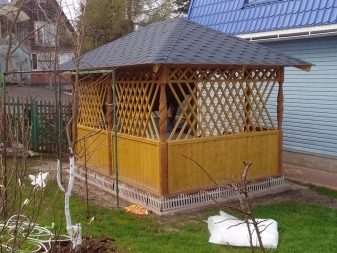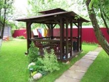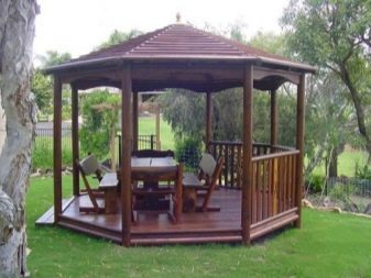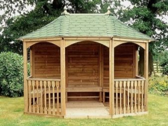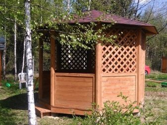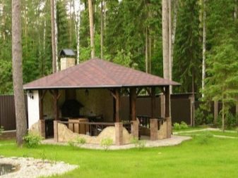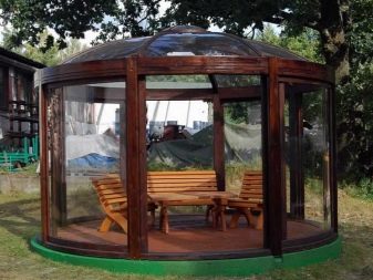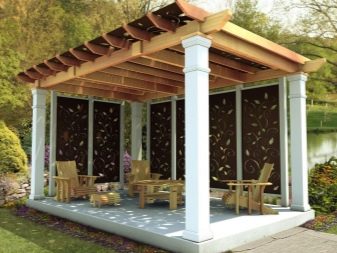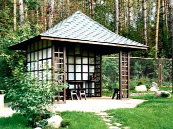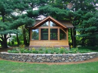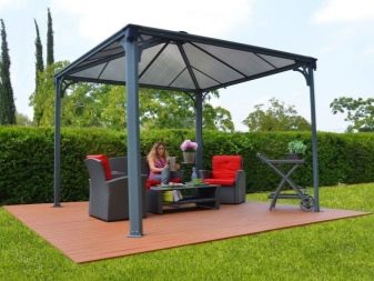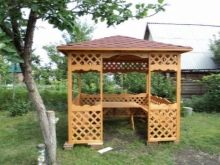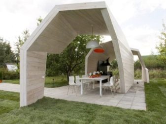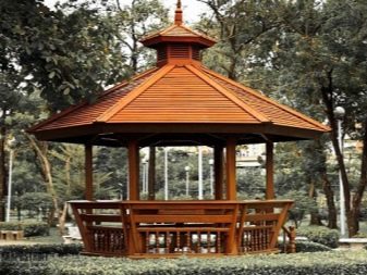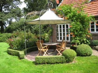 - تريد دائمًا الاسترخاء في الحديقة ، لكن تيجان الأشجار في بعض الحالات لا تستطيع حماية ضيوف الحديقة من أشعة الشمس الحارقة أو هطول الأمطار. حتى الحد الأدنى من تصميم الشجرة يفترض وجود سقف فوق رأسك ، مما يسمح لك بالتواجد بين الطبيعة ، وفي نفس الوقت البقاء في ظروف مريحة بالقرب من أماكن المعيشة.