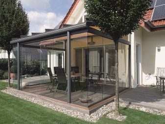 - الشرفات تم إنشاؤه لأولئك الذين يرغبون في الدخول إلى شرفة المراقبة من المنزل دون المرور عبر الحديقة. مثل هذا الهيكل هو امتداد للمنزل ، لكن درجة انفتاحه تعتمد على رغبات المالك – يمكن أن تختلف عن غرف المعيشة فقط من خلال النوافذ البانورامية ، أو يمكن أن تكون رواقًا فسيحًا به مظلة وسياج بدون أكثر من نصف طول الإنسان.