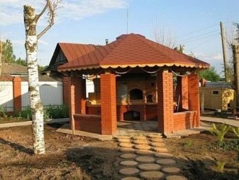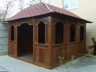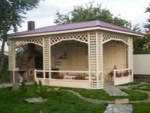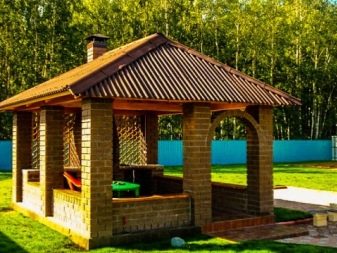 - أكشاك من الطوب يتم إنشاؤها إذا كان من المخطط استخدام الهيكل في أي وقت من السنة. تعتبر هذه الشرفة مبنى رئيسيًا ويمكن أن تخدم أصحابها لعقود حتى بدون إصلاحات كبيرة ، في حين أنها رائعة الجمال. نظرًا لأن مثل هذا الجازيبو يزن كثيرًا ، فمن المستحسن بناء أساس كومة أو شريط على الأقل له ، وبشكل عام ستستغرق عملية البناء الكثير من الوقت والجهد.