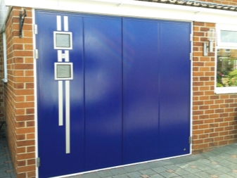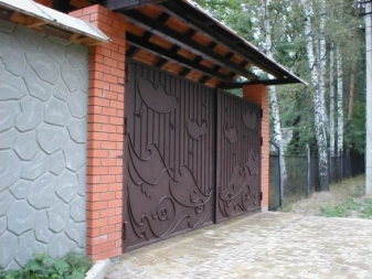 ومع ذلك ، لا شيء يمنع السائق من وضع بوابات متأرجحة في المرآب. هنا يمكنك تزيينها كما يحلو لك. على سبيل المثال ، إذا وضعت هيكلًا خشبيًا ، فيمكن تزيينه بنقوش زخرفية. وسيتم تزيين البوابات المعدنية أو المنتجات المصنوعة من الكرتون المضلع بإدخالات رشيقة مزورة. يمكن أن تكون موجودة عند الحواف وفي وسط البوابة. كل هذا يتوقف على كيفية رغبة صاحب السيارة في رؤية مرآبه.