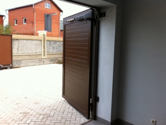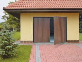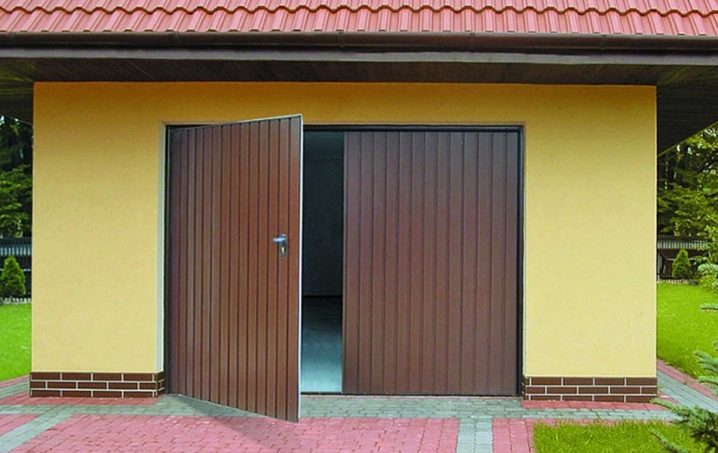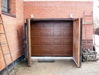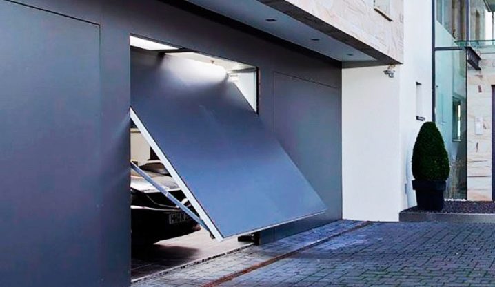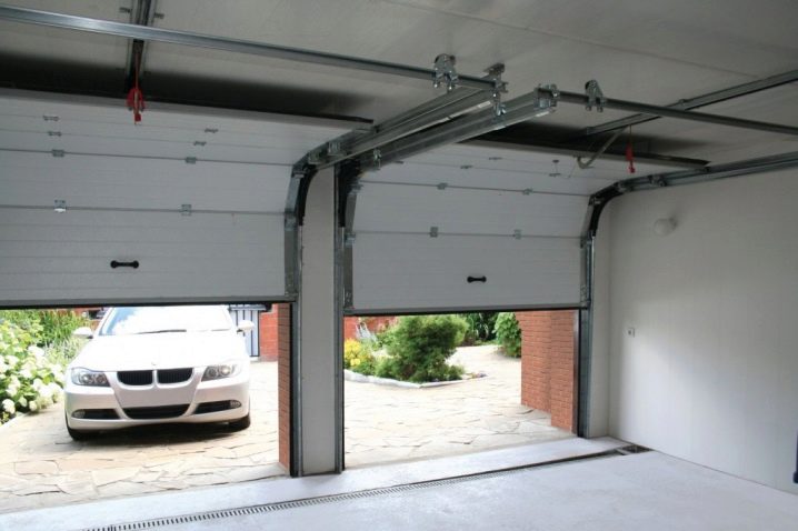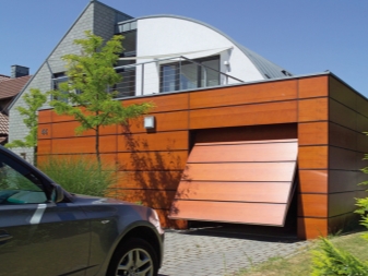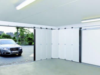 خيار مقطعي جيد هو أن تفتح البوابات دون شغل مساحة خالية بجوار المرآب. بالإضافة إلى ذلك ، فهي محمية بشكل موثوق من سوء الأحوال الجوية. لكن هذا التصميم له أيضًا عيب معين: لا يتجاوز عرض البوابات القياسية من هذا النوع مترين إلى ثلاثة أمتار ، لذلك يتم استخدامها فقط في المرائب القياسية لسيارة واحدة..