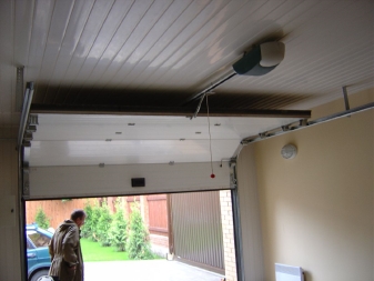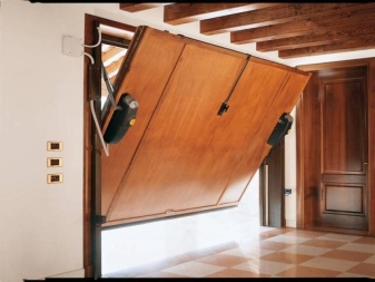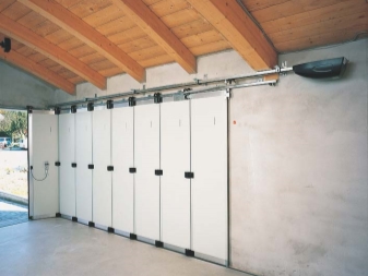 لمثل هذه البوابات ، يجب عمل أقسام خاصة في السقف.. كقاعدة عامة ، يتم استكمالها من الداخل بجوانات معدنية. يتم إغلاق هذه الأقسام من الداخل وتحمي البوابة من التأثيرات البيئية السلبية. بالإضافة إلى أقسام السقف الخاصة ، يتم استكمال هذا النموذج أيضًا بآلية زنبركية وأدلة خاصة وحتى كابلات للسلامة..
