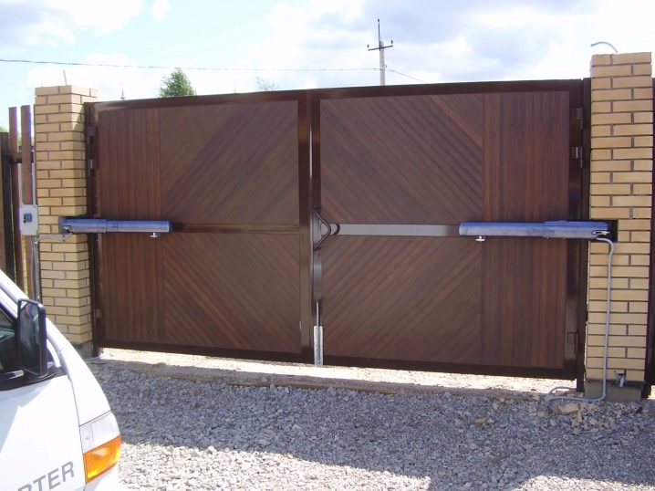 توجد هذه القضبان أدناه وفوق أو على الجانبين. كقاعدة عامة ، تأتي هذه البوابات بمحرك كهربائي. هذا مناسب لأنه يمكنك فتح الهيكل من مسافة طويلة دون الخروج من السيارة.
