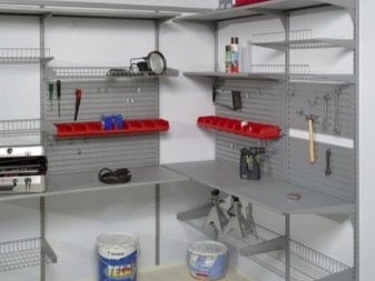 ومع ذلك ، غالبًا ما يؤدي التراكم الفوضوي للأشياء المختلفة إلى حقيقة أن العثور على شيء تحتاجه يصبح مهمة مستحيلة. لذلك ، لإزالة احتمالية حدوث فوضى ، يتم استخدام رفوف معدنية للجراج ، مما يوفر تخزينًا أنيقًا ودقيقًا للأشياء..