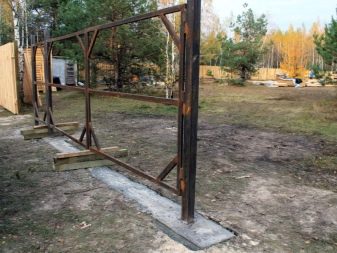 يمكن تعليق الوشاح الخفيفة نسبيًا (لا يزيد عن 30 كجم) على رفوف مصنوعة من عوارض خشبية بقسم 100 × 100 مم. بديل لها هو جذوع الأشجار التي يبلغ قطرها 160 ملم. عندما تزيد كتلة القماش عن 30 ، ولكن أقل من 80 كجم ، سيكون من الأصح استخدام الخرسانة أو الأنابيب بقطر 120 وسماكة 4 مم. إذا تم اختيار خشب ، يجب أن يكون المقطع العرضي الخاص به 140 × 140 مم على الأقل ، كما أن السجلات التي يقل حجمها عن 20 سم غير عملية.