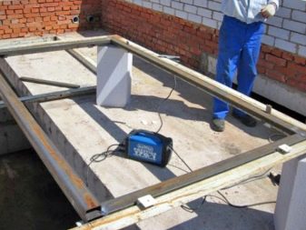 يجب أن يسبق صب طبقة من الخرسانة على المأدبة بأسلاك تزود التيار الكهربائي. في معظم الحالات ، يتم تنظيم مدخلاتهم في منتصف الأساس. على منصة عمل معدلة المستوى ، يتم وضع قطع العمل من ملف تعريف يتم تثبيته باستخدام آلة لحام. من خلال ضبط الأبعاد والزوايا ، يمكنك لحام الأنابيب تمامًا ، وتنتقل أجزاء الأنابيب من قسم أصغر إلى الصندوق.
